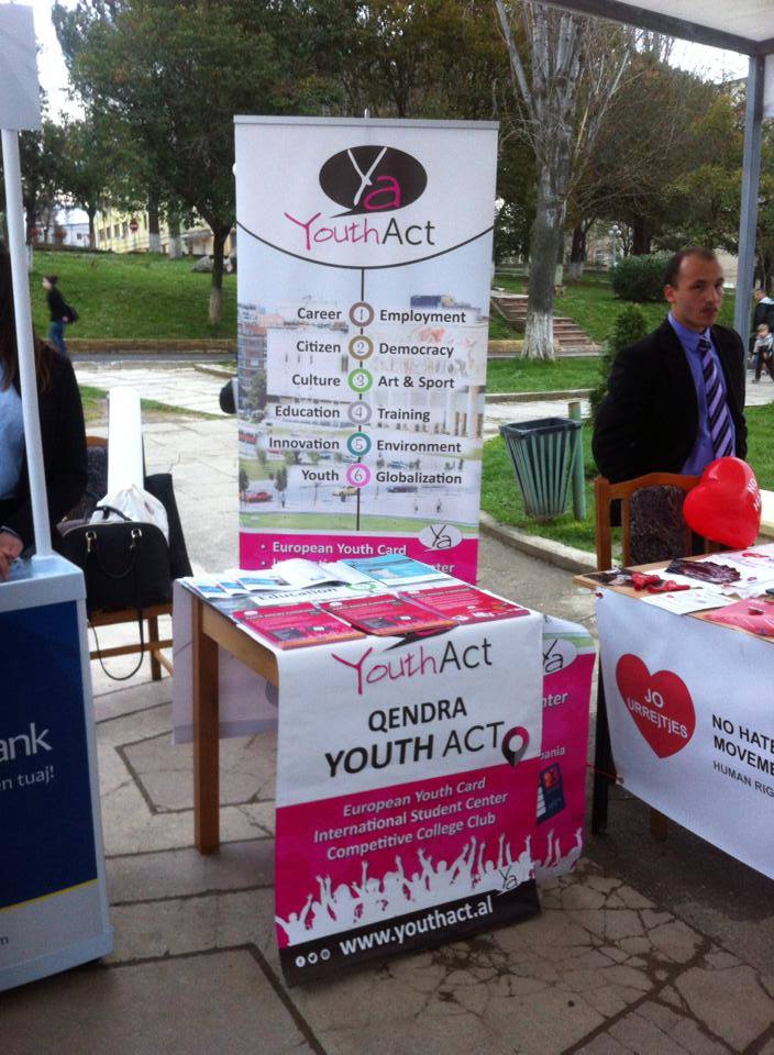Qendra Youth Act po merr pjesë keto dite në Panairin Java e Rinise që po zhvillohet këto ditë në Qytetin ‘Studenti’. Panairi i Organizatave Rinore do të qëndrojë i hapur përgjatë gjithë javës në Sheshin ‘Demokracia’. Cdo ditë zhvillohet një seri takimesh informuese mbi mundësi punësimi, aftësimi, socializimi, konkurimi, aplikimi e gjithcka tjetër në shërbim të rinisë!